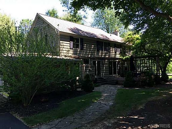 Welcome to Paradise! Spacious Colonial home nestled among the trees with stately elegance. Classic circular driveway on more than 1.5 acres includes an extra buildable lot. Loads of natural light inside, custom hardwood floors, cozy fireplace and great space for entertaining indoors or out. One first floor bedroom currently used as an exercise area, three beds upstairs including the master with glamour bath, and a finished room downstairs as an added bonus. Experience the charm! Williamsville schools.