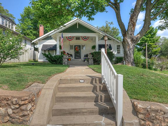 You will love this move in ready home! Beautiful home with over 1400 sq. ft. built in 1915. Charming with original features such as dark wood trim around woodburning fireplace, hardwood floors under carpet, baseboards and front door. Sunroom has full bath may use for guest bedrom, exercise area or office. Backyard with workshop and used as extra garage. Privacy fence allows you to enjoy sitting on Shed/garage deck admiring beautiful trees and flowers. Close to Neosho Square, Freeman Hospital & Clinic and parks.