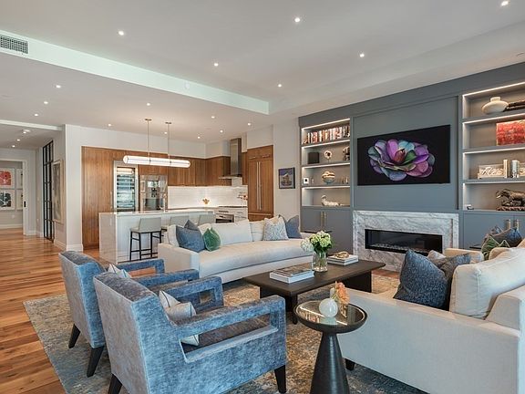 Stunning waterfront PENTHOUSE with private roof terrace. 3 BEDROOMS with en suite bathrooms and a fabulous DEN located in Pier 4, the Seaport's luxury boutique building. Private 14' balcony,low voltage lighting and sound system & floor to ceiling glass windows with electric blinds compliment the spacious open kitchen/living/dining room. The gourmet kitchen has an expansive marble counters & waterfall island w/seating and Gaggenau/Bosch appliances including a 5 burner gas range,steam oven & 99 bottle wine refrigerator. The luxurious primary suite is comprised of a full wall custom built in and two custom closets complemented by an en suite bathroom with marble shower, separate water closet and double vanities. High end finishes include electric blinds, wide plank walnut floors and ceilings up to 10'4". Direct access from the living room is a private Roof Terrace with stainless steel kitchen comprised of a gas grill, refrigerator, sink, ice maker, island with bar seating and gas firepit