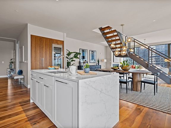 For those who seek something special - distinctive, unique, and out of the ordinary - Penthouse N at Pier 4 offers bold New York–inspired style in the heart of Boston’s Seaport. With sweeping views of striking urban architecture and the vibrant streetscape below, this 3-bedroom, 3.5 bath residence embodies dramatic design and sophisticated living. A private half bath for guests enhances its effortless entertaining appeal. Ascend the grand staircase to your private rooftop terrace and take in the ever-changing harbor below—a lively panorama of sailboats, barges and yachts set against the city skyline. As evening falls, pink skies fade to moonlight shimmering across the water. Complete with a stainless-steel grilling station and inviting spaces to relax or entertain, this rooftop oasis defines inspired city living. Building amenities further elevate your experience... state-of-the-art Fitness Center, Lounge, Common Kitchen and Roof Deck — complimented by (2) convenient parking spaces.
