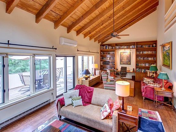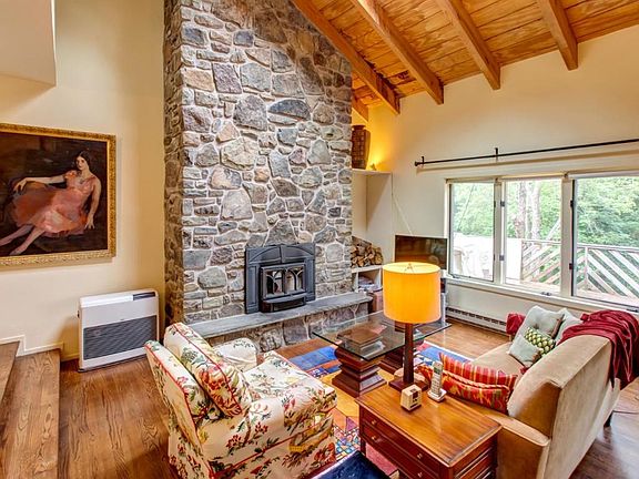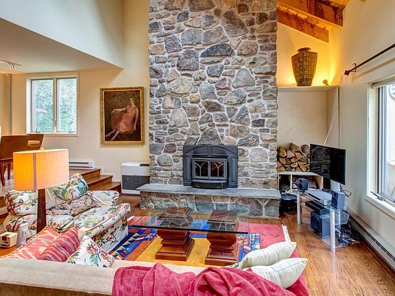 Luxury at the Roxbury Run Village can be yours! Lovely unit offers three bedrooms, two bathrooms, dining area as well as a spacious living room with wood floors and cathedral ceilings. Open and airy, with sliders to the back deck that overlook the trees, plenty of natural light and a formidable stone fireplace. Very functional kitchen as well as a bathroom and bedroom on the main floor. Ideal for family & guests so they feel like they have their own private area. Second floor has an additional two bedrooms with a full bathroom. Ample storage space, nice finishes and ready to go!Affordable monthly HOA will offer you a BEAUTIFUL pool with mountain views, tennis courts as well and nature trails. All you need is the key, it's all done for you. Enjoy yourself, walk right in and feel the stress melt away. Located minutes to charming Villages, SKI CENTERS as well as GOLF courses and farmers markets. Four Season Fun area in the stunning Catskills. THE CATSKILLS ARE CALLING YOU!