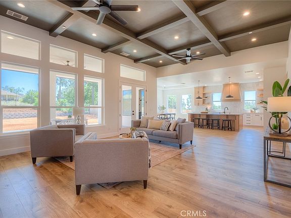 Introducing a stunning new construction home with custom upgrades that will leave you in awe. This magnificent residence is adorned with a 50-year presidential roof, sleek black-framed windows, and an impressive display of stone on the front facade. As you approach the home through the oversized stamped concrete driveway, spanning a grand 20 feet wide, you'll experience an unparalleled sense of arrival. Nestled in a highly desirable subdivision boasting wide roads and offering convenient access to Chico, this location is perfect for those seeking both tranquility and convenience. Additionally, the property provides the potential for RV access, adding to its versatility and appeal. Prepare to be captivated by the grand entry double doors that make a statement from the moment you arrive. Step inside and be greeted by the main living area, where your eyes will be drawn upward to the soaring 12-foot box beamed ceilings, beautifully finished in a stylish shade of black. Expansive floor-to-ceiling windows flood the space with natural light, perfectly complementing the warm ambiance created by the wood-toned floors. The kitchen is a culinary enthusiast's dream, featuring a magnificent 48-inch stainless steel gas range accompanied by matching appliances. White oak custom cabinets offer ample storage, while a vertical stack tiled backsplash that extends to the ceiling adds a touch of elegance. A coffee bar, complete with a cabinet to discreetly house appliances, and a well-appointed pantry further enhance the functionality and beauty of this space. The master suite, located at the back end of the home, offers a tranquil retreat. With its own fireplace, it exudes an inviting ambiance. The ensuite bathroom boasts an oversized walk-in shower, a generously sized soaking tub, and a walk-in closet that is sure to impress. On the same side of the home, you'll find a spare bedroom, while the opposite end reveals two additional bedrooms, a hall bath, and a convenient half bath. Each room is thoughtfully designed to provide comfort and style. Step outside to the expansive covered patio, perfect for relaxing or entertaining guests. The patio is also equipped with a 220v plug, ready to accommodate a hot tub for your enjoyment. Upgraded homes of this caliber are rare gems, and this one won't stay on the market for long. Don't miss your opportunity to own this extraordinary residence. Schedule a viewing today and witness the epitome of luxurious living.