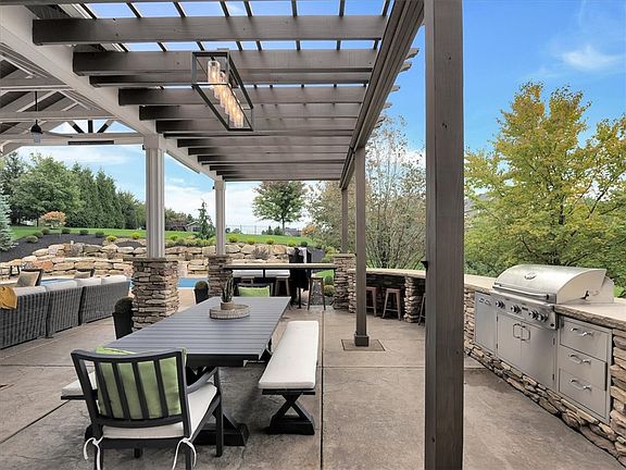 Exceptional entertaining home on an amazing, fenced lot with inground pool, hot tub, roof covered patio featuring a stone fireplace, pergola with outdoor kitchen & 4 car garage! Immaculate interior with neutral decor, filled with natural light & an open floorplan. 2 story entry, inviting Dining Room that flows into the oversized chef's kitchen. Family Room with stone FP & windows that overlook the expansive lot. 1st floor den with french doors, built-in bookcases & an elegant Living Room. Master suite with built-in shelving, walk-in closet, spa-like master bath with dual sinks, jetted tub & walk-in tile shower. Bedroom 2 with ensuite bath & walk-in closet, generous sized bedrooms 3 & 4 share hall bath. Brand new carpeting throughout. Beautifully finished walkout game room with full bath, workout area, gaming space, family room area & a Kitchenette & bar. Wonderful storage. Backyard Oasis for the whole family to enjoy! Walk to Pine/Richland Schools. Original owners, first time offered!