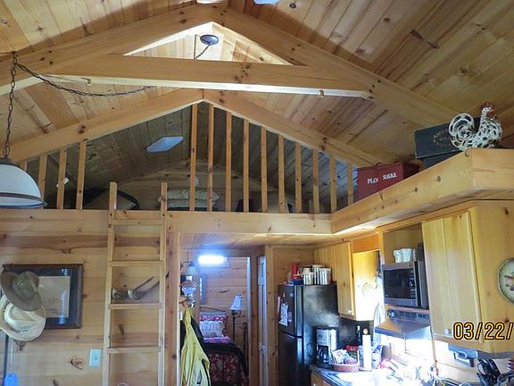 Unique 20 acre property with loads of possibilities. Log tiny house is so compact but has everything needed for everyday living. Nice bedroom and full bath, full kitchen, overhead loft serves as additional sleeping area and is great for the kids. Custom built living room with gas FP could be used as 2nd bedroom. 384 SF building partially finished with full bath and complete bedroom. 2 septics.