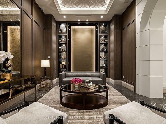 Located in downtown Oakville, Penthouse 9 at The Randall Residences offers almost 2,664 square feet of well-designed, luxury condominium living with 12 foot ceilings throughout. Built by Rosehaven Homes and designed by architect Richard Wengle, this home combines classic design with modern features. Interior finishes were selected by designer Ferris Rafauli and include high-end materials and thoughtful touches throughout. The Downsview kitchen is both practical and stylish, with marble countertops, built-in appliances, and sleek cabinetry. The large living room includes a gas fireplace and space for relaxing or entertaining. Across the main hall you find your formal dining area which includes custom storage and a full Sub-Zero wine fridge - great for hosting guests. The main bedroom includes a oversized walk-in closet and a full ensuite bathroom with double sinks, a soaking tub, and a shower. The second bedroom, which also has a private 3-piece ensuite, can be used as a den or home office. This suite also has a private in-suite elevator that leads to a mezzanine level, which can be used as a separate family room, a private gym, lounge, or studio. The rooftop terrace offers 1,390 square feet of terrace space which includes a sitting area with wide views of Lake Ontario - ideal for outdoor meals or quiet evenings. Other notable features include hardwood floors, crown molding, coffered ceilings, and a Crestron home system for lights, automatic window shades, and security. This suite also includes three dedicated parking spaces, a large storage locker, and unmatched proximity to Sotto Sotto, a boutique fitness club, and a luxury beauty lounge. Quick access to major highways ensures a seamless lifestyle both in and out of town. More than just a condo, this home offers high-end features and thoughtful design for buyers who want the best.
