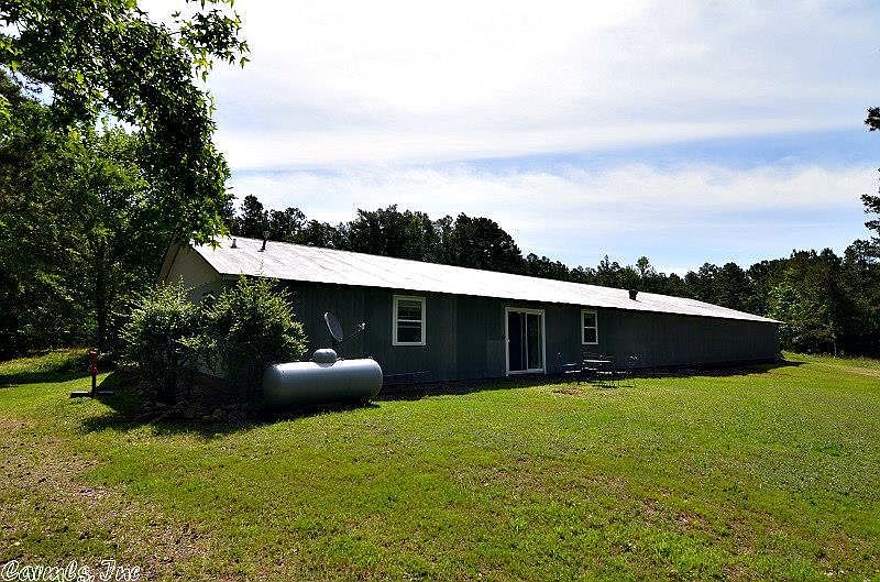 BARNDOMINIUM on private drive w/gated access. 27 wooded acres bordering National Forest. 1600 sq ft home within 50'x100' barn. 2 bdrm, 1 bath, eat-in kitchen, large pantry, open concept living area and office space. Tons of shelving throughout. Stained concrete floors. All new double hung windows & sliding door. 3 additional 50'x100' barns. 23'x46' garage. Fully furnished rental/guest cabin w/kitchenette & heart-shaped tub on pond. Private and secluded yet minutes to town and lake.