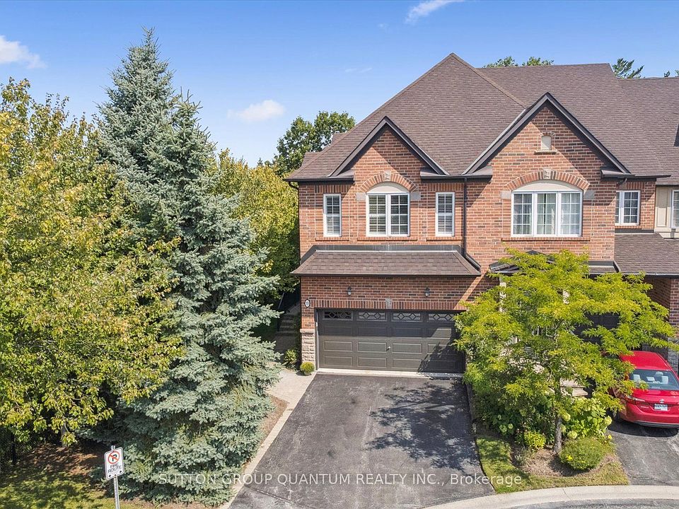 END UNIT LOCATION with a full 2 car garage in the Brownstones Luxury Townhome Community. With two large primary bedroooms, and an open concept office, this one of a kind condo townhome is a real gem, situated in this boutique complex built by Legendcreek homes. The Wedgewood Creek community features highly regarded schools, and this convenient Northeast Oakville location provides easy access to the QEW and 407 for commuting. This townhome is ideally situated fronting onto a tranquil pond and backing onto a lush ravine, and offers access to true natural beauty, ideal for walkers and dog walkers. A large living room filled extra-large picture windows gives view to lush greenery and seasonal views. Gleaming maple hardwood flooring, 9 ft. ceilings with potlights, California shutters, and a classic gas fireplace create warmth and coziness to this gathering space. The kitchen with upgraded maple cabinetry and breakfast room walks out to a new large private two-tier deck. The large 2 car garage with loads of storage shelving provides direct inside access to the main floor. There is a 2 piece powder room on the main floor. Upstairs are two spacious bedrooms, each with windows on all 3 sides of the room, walk in closets and ensuite bathrooms, creating two primary suites. The open concept office separates the bedrooms and the second floor laundry room with linen closet create added convenience. The basement is fully finished and includes a three piece washroom, making it suitable for an additional bedroom, media room, or multiuse space. Trails provide walkability to Iroquois Ridge HS and Community Centre with library and pool and shopping and highwway access a short drive away. Fantastic location! Dont miss your chance to live surrounded by nature in the highly sought after private complex, with all the modern conveniences offered with condominium living. The perfect choice for active downsizers.