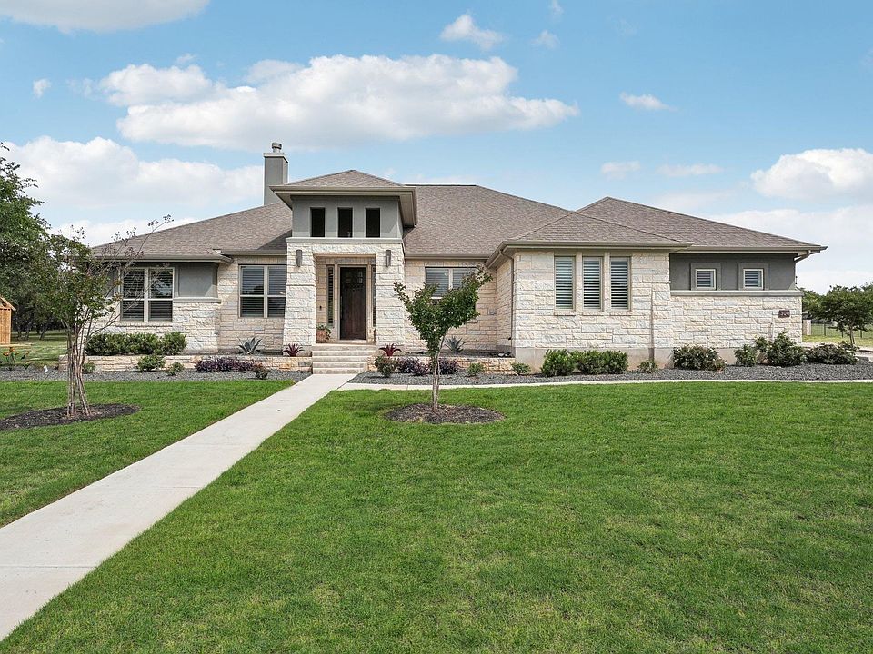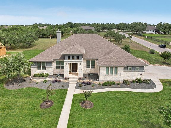 Discover exceptional Hill Country living at this custom-built, single-story home on a full acre in the sought-after Highland Oaks neighborhood of Leander, TX. Zoned to top-rated Liberty Hill ISD and located near Georgetown, Liberty Hill, and North Austin, this property offers the ideal mix of privacy, convenience, and space. This custom-built residence features 4 bedrooms, 3 bathrooms, and a dedicated office/flex space—ideal for remote work, hobbies, or guest accommodations. The open-concept floor plan is designed for modern living and effortless entertaining, with 8-foot interior doors and abundant natural light throughout. The heart of the home is a chef’s kitchen equipped with quartz countertops, a five-burner gas cooktop, built-in stainless appliances, and an expansive center island. The living room offers a cozy gas-log fireplace and views of the mature trees that surround the property. The private owner’s suite is tucked away from the secondary bedrooms and includes a spa-inspired bathroom with a large soaker tub, oversized walk-in shower, dual vanities, and a custom walk-in closet complete with built-in shelving and drawers. Two additional bedrooms are connected by a Jack and Jill bathroom with separate vanities—perfect for family or guests. Additional highlights include wood-look tile flooring throughout, a large covered patio for outdoor gatherings, and an oversized three-car garage with extra space for storage or workshop use. Highland Oaks is known for its wide-open spaces, mature trees, and quiet, family-friendly atmosphere, making it one of Georgetown’s best-kept secrets. Conveniently located near Ronald Reagan Blvd, Hwy 29, and 183—providing quick access to shops, dining, HEB, and major employers in Austin's tech corridor. Experience elevated Hill Country living just outside the city.