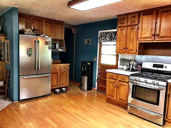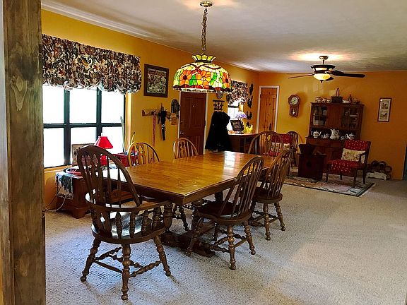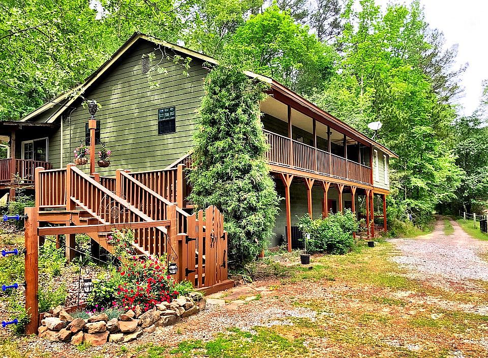 A Nature Lover's Dream! 53 acres containing fenced pastures, wooded land, wide cut trails, year round running creek, and your own personal waterfall! The home has had beautiful renovations including reclaimed wood flooring in the living room and one of the bedrooms, remodeled bathroom with a clawfoot tub, reclaimed wood ceilings in the downstairs bedroom, downstairs bathroom remodeled with rock floor and shower, and many small features using reclaimed wood from the land. The living room also accesses a small porch perfect for grilling. The huge master bedroom en-suite has 2 large closets and a separate sitting room accessing a small covered porch. 2 garages with workshop/storage area.