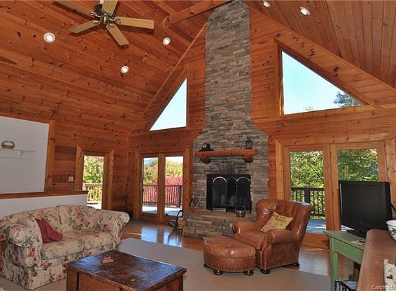 Enjoy the long-range views while relaxing on the large deck next to the out-door fire place of this private cabin in the mountains. Main level of the home features a large living room with rock fireplace and open kitchen for entertaining, master suite and second large guest room all with hardwood floors. Lower level has a large family room with a fire place, guestroom and bonus room as well as the garage. Additionally, there is a loft that over looks the main level that has a separate entrance. Home is located near the Pisgah National Forest/Colman Boundary area and is walking distance to many trails and nature.