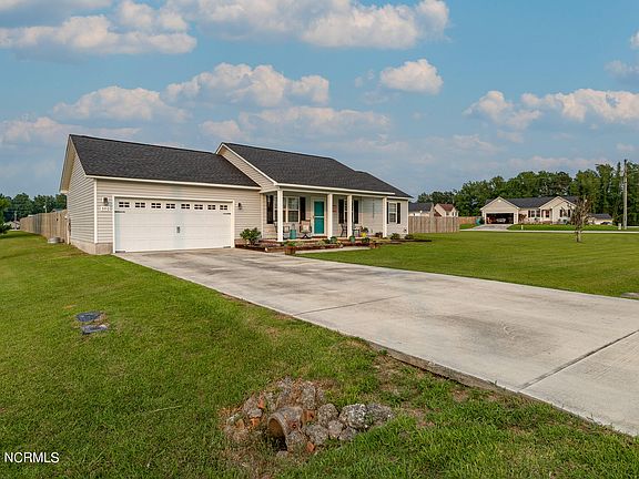 Welcome to this beautiful, well-maintained 3-bedroom, 2-bathroom home located in the Woodbury Farm Subdivision, outside of city limits. Upon entering the front door, you will be greeted by an open concept living space, creating an inviting atmosphere throughout the living room, dining area, and kitchen. The kitchen features a convenient breakfast bar seating area, a pantry for your storage needs, and easy access to the adjacent laundry room. On the right side of the home, you will find a full bathroom located in the hallway, two spacious bedrooms, and a primary bedroom that is sure to check all the boxes! The primary bedroom features a tray ceiling, en-suite bathroom with a dual vanity, and not one, but two closets! This home is perfectly situated on a large corner lot. The inviting front porch sets the stage for warm welcomes and relaxed evenings. Meanwhile, the fully fenced in back yard is the perfect space for entertaining and creating lasting memories! Don't miss the opportunity to make this great home yours! Schedule your showing today!