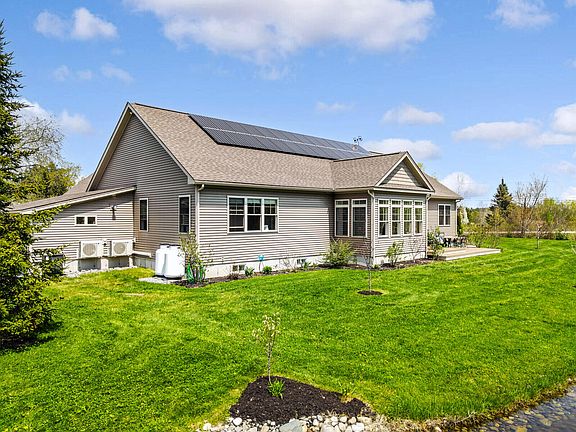 A truly gorgeous 3000 sq ft home with nearly 6 acres and so many amenities that you will need to see for yourself. One level living with a finished basement, and over 2000 feet of open concept space on one floor complete with a sun-room that has glass on 3-sides and radiant heat in the floor. The beautiful oak and granite kitchen is accented with an oversized island, great for snacks, coffee or conversation and overlooks onto the dining room, living room and sun room. The master bedroom is sized for a king bed with lots of space for a reading chair or loveseat. Two bedrooms on the opposite side of the house with a shared full bath. The living room is graced with a pellet fueled fireplace and sliding doors onto the deck with views of beautiful landscaping and the 10-foot-deep farm-pond complete with a fountain. Such practical elegance throughout the home and property. An attached, propane heated 13x30 workshop with an overhead door that is sure to be the envy of those who appreciate such things, a separate detached 20x27 garage for storage or perhaps a farm stand or crafts, and the finished basement could be the ultimate game room, den, work-out room, or sanctuary. The home is equipped with solar panels on the roof and has allowed the HEAT AND ELECTRICAL costs to be only $13.66 per month for the past 5 YEARS. Located only 10 minutes to I-95, 30 min to Augusta, 25 to Lewiston and less than an hour Portland.