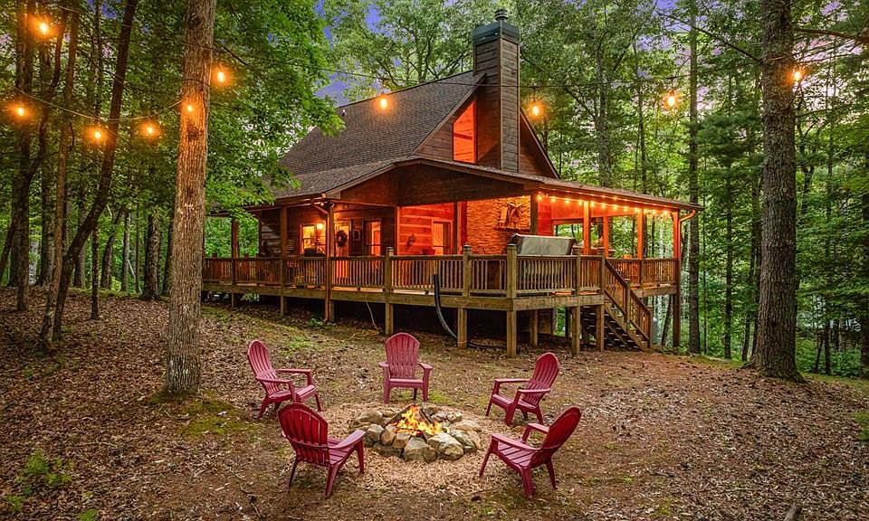 Nestled amidst a picturesque mountain landscape, this charming cabin offers a perfect escape for anyone seeking tranquility and adventure. The cabin boasts a cozy and inviting atmosphere, with a rustic stone fireplace that adds warmth and charm to the living area. It is complete with two bedroom suites, an additional sleeping loft and cathedral ceilings that highlight the natural beauty of the wood and craftmanship of the cabin. It comes fully equipped with modern amenities, including a well-appointed kitchen, a comfortable dining area, and a cozy living room with a flat-screen TV. It features a large wrap around covered deck with comfortable seating, a stunning outdoor fireplace and jacuzzi for the perfect indoor/outdoor living situation. This beautiful home is located within a gated community that has access to the US National Forest. This means that you can easily access miles of hiking and biking trails. It also features numerous recreational fishing and paddle lakes and Toccoa River access for hours of adventurous fun just outside your back door. The cabin has a new roof, HVAC, hot water heater and comes fully furnished with a few exclusions (see exclusion list). It is a short distance from the Toccoa River and Lake Blue Ridge. The community allows short term rentals, and is currently on a rental program under “Jack Bear's Cabin.” This mountain getaway offers the perfect blend of comfort, adventure, and natural beauty, making it an ideal destination for anyone seeking a memorable permanent home, vacation home or investment property.