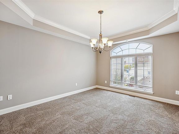 The expansive kitchen boasts stainless steel appliances, ample counter space, and an open layout that seamlessly flows into the living and dining areas. The vaulted ceilings create a grand, airy atmosphere throughout the main living spaces. The large basement provides versatile square footage that can be utilized in a variety of ways, such as a media room, home office, or additional living space.