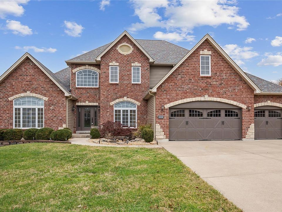 This four-bedroom, three and a half bathroom home offers approximately 4,166 square feet of living space. The home features stainless steel appliances in the kitchen, main floor laundry, a large unfinished basement, vaulted ceilings, and a large three-car garage. Additionally, there is a small pond located at the front entry. The spacious main floor primary bedroom provides ample room and privacy. The en-suite bathroom includes dual vanities and a luxurious shower. The three additional bedrooms upstairs offer comfortable accommodations for guests or family members.