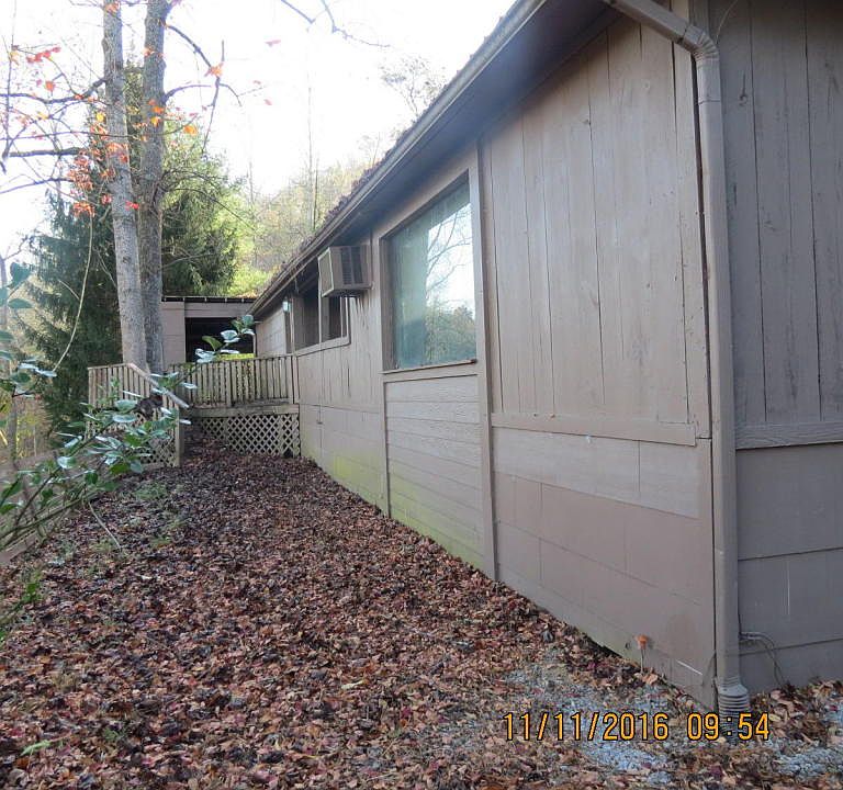 Property does not have a driveway or well. Property is steep to rolling with access at road through the tree line clearing. The home needs repairs. Low ceilings yet large living room with wood stove for heating. Nice 3 car carport and level side yard.