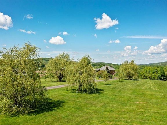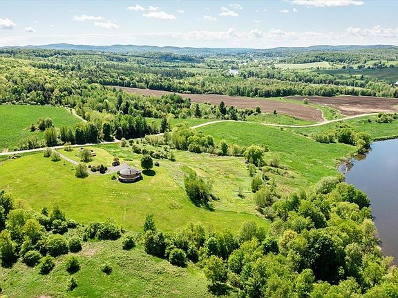 Owned green energy features from wind turbine and solar panels. Net metering with EV Charger installed. 17.6 acres with 668’ feet of private Missisquoi River Frontage, and 1,176’ of dead-end road frontage - only 6 miles to town for services. Custom, rounded design with cupola and vaulted ceiling in the main area, this home gives a 360 degree river valley view from inside windows and the composite deck that surrounds the majority of the home. Main level living features an open concept with abundant natural light centered around a solid brick fireplace with brick woodbox and solid brick chimney. The well-appointed kitchen includes custom Vermont artisan-made cabinetry, granite countertops, and a Miehle dual fuel gas range. A first floor primary suite provides a custom wardrobe closet and en-suite bathroom. Fully finished walk-out lower level with den, and additional bedroom space. Laundry hook ups on both levels of the home. Enjoy the large heated studio shed, with its own Comcast connections fit for a home business or serious hobby and beautiful views. Walking trails throughout the property lead to a flat and accessible area of river frontage. Radiant floor heat on both levels as well as a central heat pump/AC split unit. This home received a 5 Star Energy Rating from Vermont Energy Efficiency who monitored its building in 2007. This home is equipped with Comcast high speed internet and dedicated office space on the main floor – a rare feature in such a private location.