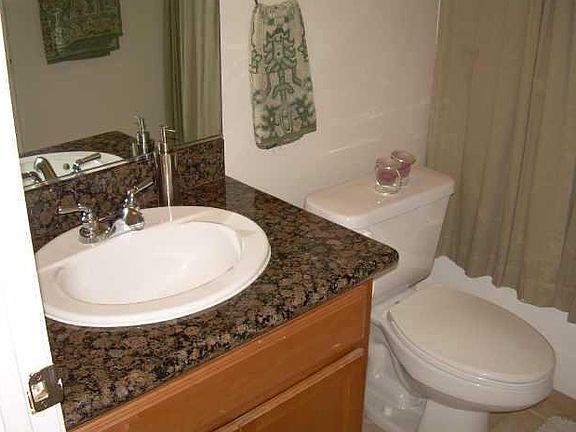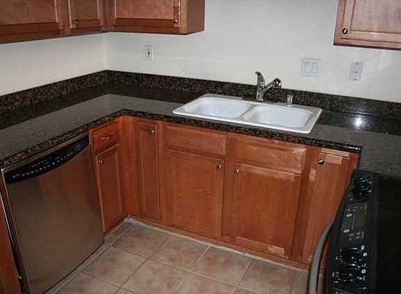 Great ground floor corner end unit in small complex. Granite in kitchen & baths, maple cabinets with custom storage, stainless appliances, breakfast bar, tile, laminate & carpet floors,dual pane windows, crown molding central heat & air, storage and large private fenced patio. Mirrored closet doors, Refrigerator & stacked laundry in unit (conveys), one assigned covered parking & one additional space. Near parks, schools and easy freeway access. Gated complex with community pool.