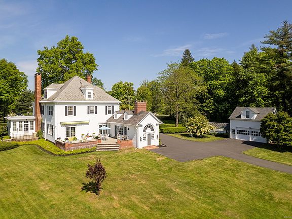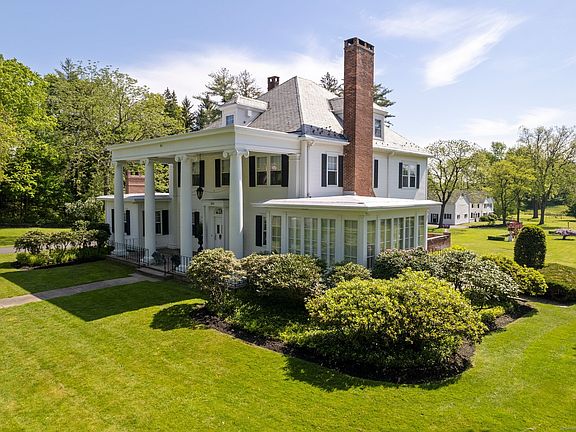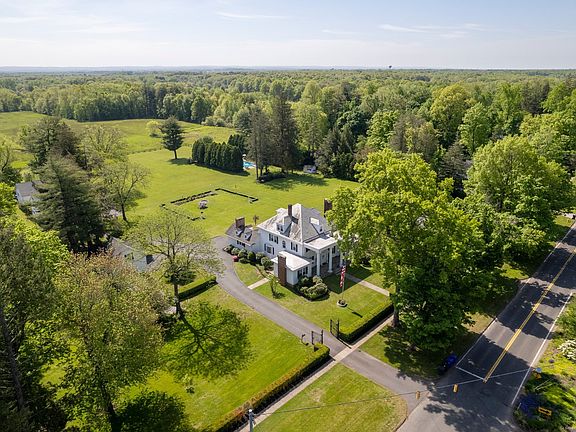 Proudly standing at the southern end of the Suffield Historic District, this iconic estate offers an unparalleled living experience with 3 distinct homes designed for multi-generational families or guests. The main house, built in 1934, is a masterpiece of vintage architecture. Elegant yet inviting, it boasts spacious rooms, high ceilings, and ornate detailing. This residence features 6 beds, 4.5 baths, and an elevator between the lower and second floors. The lower level includes a lounge, wine cellar, and a full bath with hot tub. The 2,472 sq. ft. carriage house, with 4 beds and 3 baths, is ideal for extended family members, providing ample space and privacy with its well-designed layout and modern amenities. A studio apartment serves as accommodation for guests, an ideal home office, or an artist's retreat. It includes a kitchenette and full bath. The property also features a spacious barn with ample room for horses or storage and a greenhouse leading to a cozy sitting area with a fireplace; perfect for gardening enthusiasts. The estate's outdoor amenities are equally impressive. The concrete pool, measuring 80 x 25 ft., is served by an artisan well and is complemented by a pool house with kitchenette, sitting area, bathroom and 2 showers, creating a luxurious summer oasis. The tennis courts provide additional recreation. This exceptional estate offers a unique blend of historical charm and modern luxury, a perfect sanctuary conveniently close to the airport and highways. Property is currently 26.99 acres, and is being sold with approx 5 acres. Seller will retain farmland beyond the fence.