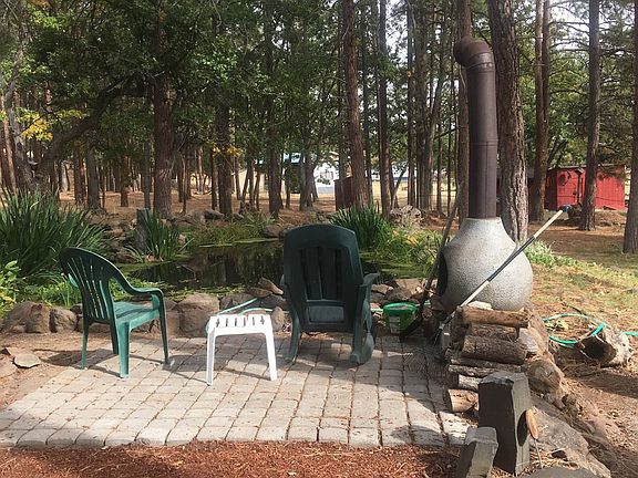 Great Pine Hollow Home. 3 bedrooms 2 bath on 1.23 fenced acres. Fresh exterior paint.Detached 2 car garage with opener and two carports. 12x20 Vaulted front porch over looking the front yard. 12x22 enclosed sun-flooded room w/ pellet stove. Vaulted living and kitchen with large pantry.Pond w/koi and creek feature.Garden/craft shed with power. Fenced with rear yard irrigation. This is a must see home! Buyer to verify & Due diligence