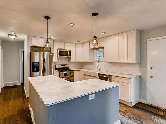 This stunning ranch has been updated with a lot of character! Stainless Steel appliances, nice open floor plan, 3 bedrooms with an updated bathroom. There is a wonderful bonus room that makes for a great little seating area and or dining room. This home sits on a HUGE corner lot with beautiful mountain views from the front and views of down town in the back. Is has plenty of space and accessibility to add that garage/shop that you have always dreamed of and the yard is ready for your personal touches. New roof, front siding, and gutters will be installed prior to closing due to the recent hail storm. This little gem is just blocks to St. Anthony's, Denver Federal Center, Addenbrook Park, Union restaurant/commercial area, and the Light Rail W Line station.
