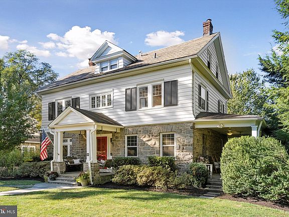 OPEN HOUSES CANCELLED! Be Sure to Watch The Full Motion Video! Location, oversized lot, 7 bedrooms & finished walk-out basement! Nestled on a beautiful tree-lined street, 300 South Narberth is truly a special gem on a large lot (originally FOUR Narberth lots) on the desirable South side, seamlessly blending historic character with modern conveniences & essential system updates. Just a 3 block stroll to both Merion Elementary, the highest-ranking elementary school in LMSD, and a similarly short walk to charming downtown Narberth, with its delightful shops, restaurants & Septa train station. This location is simply unparalleled! After parking your car in the generous private driveway (with room for 6-7 cars), a charming covered front porch welcomes you home. Relax on 2 custom porch swings while watching the world walk by or retreat to your covered side porch that spans the entire width of the house and provides a perfect retreat as it is surrounded by mature plantings offering plenty of privacy! Step inside to discover a magnificent center hall, featuring a stunning staircase with 2 elegant landings leading to the 2nd floor. The 1st floor boasts a spacious living room ideal for gatherings, complete with working pocket doors, deep window sills, exposed beams & a cozy wood-burning fireplace that invites relaxation. Adjacent to the living room is the formal dining room, perfect for hosting dinner parties, which opens seamlessly to a thoughtfully renovated eat-in kitchen designed to maximize utility. From the kitchen, step outside to a generously sized, FLAT & fully fenced yard--perfect for throwing a baseball or hosting summer BBQs, creating an idyllic space for outdoor enjoyment. Completing this floor is a convenient powder room tucked under the stairs. On the 2nd floor, you'll find the primary bedroom featuring a decorative fireplace, ample space for a king bed and a large, adjoining walk-in closet. This level also includes 2 additional spacious bedrooms and a smaller room that is perfect for an office or nursery. The updated hall bath features an extra-long vanity with Cararra marble top & a frameless shower with 2 shower heads. The 3rd floor presents 2 more well-sized bedrooms, a laundry area & another fully updated hall bath, providing versatile options for family living, guest accommodations or additional office space. Descend to the remarkable lower level, which offers 900 square feet of additional finished living space (verified by appraiser), an easy walkout to the yard & bright daylight on 2 sides. It features a large open recreational room along with a functional kitchenette-like area, perfect for long term guests or backyard catering (just add a hot pad!). A separate bedroom or home office with emergency egress & a delightful full bath complete this level, making it an ideal in-law/au pair suite or simply a wonderful guest retreat. All of this plus a large driveway, perfect for playing basketball or parking a fleet of cars (2 wide in some spots)! Should you need a covered parking spot or just need more storage, this home also boats a 1 car detached garage accessible from Chestnut Street! Some of the major improvements to this home over the years of ownership include adding 2 zone AC, a fully replaced "stack" or drain line for entire house out to the curb, updated electric (no knob & tube here), all 4 updated baths, updated kitchen, insulation added to walls & attic and the list goes on! Windows on top 2 floors were replaced with highest quality true divided light, insulated, clad windows & the 1st floor windows were sensitively restored, reglazed & insulated to maintain the historic character. Unpack your bags & walk to the charming shops, thriving restaurants, delightful playgrounds & vibrant community events such as 4th of July fireworks, music & arts festivals, scavenger hunts & the Dickens Festival. Schedule your tour today to discover the magic of this remarkable property for yourself!