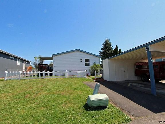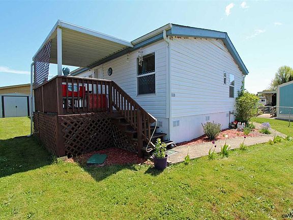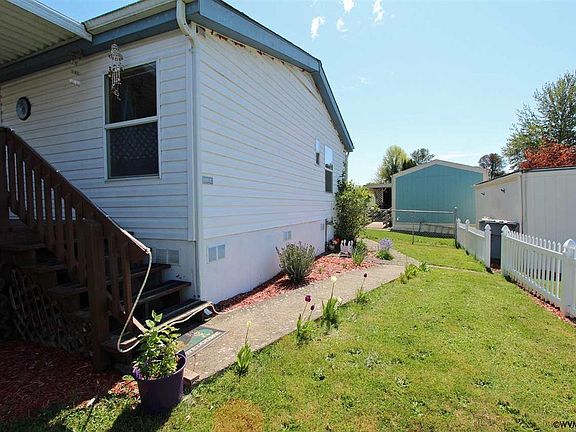 This split bedroom floor plan is perfect for roommates or family living in this all age park. Vaulted ceilings, plentiful windows and an open plan create nice living spaces with separation of sleeping areas. Master bedroom is spacious with a walk in closet and built in vanity area. Located 2.5 miles away from OSU, this home is convenient to downtown and campus. Vinyl siding and a low maintenance fenced yard are easy care.