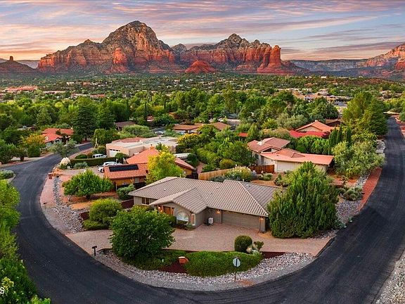Beautifully appointed 3 BD | 2 BA | 2,143 sq ft home on a generous .29-acre corner view lot in prime West Sedona location. This stunning property features captivating views of Sedona's iconic red rock formations, including Thunder Mountain & Coffee Pot Rock, right from your backyard. Enjoy easy access to grocery stores, trendy restaurants, boutique shopping, & renowned hiking & biking trails, perfectly blending outdoor adventure with active living. Inside, find a warm interior bathed in natural light, durable tile floors, an open kitchen with stainless appliances/granite countertops, and a spacious primary suite with 2 closets and luxurious whirlpool tub in the ensuite. No HOA-STR-friendly, this property is perfect for capitalizing on Sedona's thriving rental market