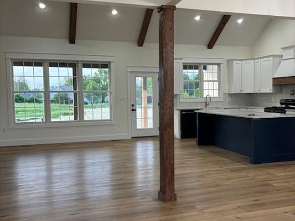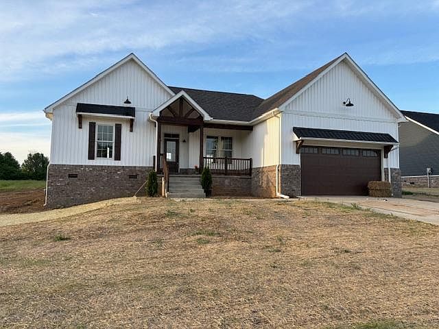 Step into modern farmhouse luxury in Mt Sterling's newest gem, Sande Ridge! Introducing our exquisite new construction home, where every detail whispers sophistication and comfort. Nestled in a prime location, this custom-built beauty boasts 3 bedrooms, 2 bathrooms, and an open floor plan that dances with natural light. Vaulted ceilings adorned with rustic beams elevate the ambiance, while quartz countertops and black stainless-steel appliances redefine elegance in the heart of the home. Whip up culinary delights on the gas range with a convenient pot filler, complemented by a custom backsplash that's as stylish as it is functional. Cozy up by the gas log fireplace framed by built-ins or gather in the dining room for memorable meals. Retreat to your oasis in the spacious primary suite, where vaulted ceilings and beams create a serene atmosphere. Indulge in the custom tile shower, soak away stress in the luxurious tub, and savor the convenience of double vanity sinks. With walk-in closets and a pantry, storage is never a worry. Embrace indoor-outdoor living on the large covered rear patio, and don't forget to relax and unwind on the charming covered front porch.