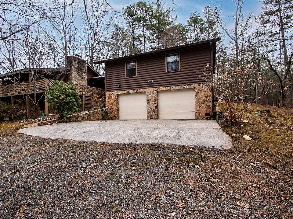 This log & stone cabin is unrestricted & sits on 3.81 +/- acres! The double detached garage is perfect for storage, your workshop, and your toys. Above is a finished room with a half bath and laundry room. Covered deck from garage to main house. Wrap around deck (partially covered) to enjoy all the mountain seasons. Living room has beautiful stone fireplace. Master suite is on the main level with large walk in closets. The basement boasts a bedroom, bathroom, laundry room, and bonus room with walk out access to concrete deck. Be surrounded by the natural beauty of the Appalachian forests and enjoy all that the mountains have to offer.