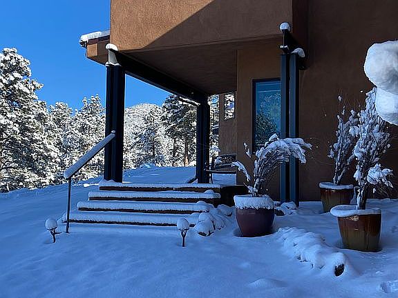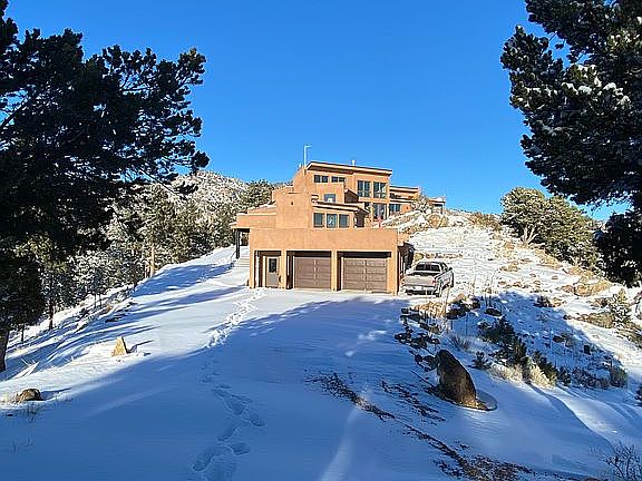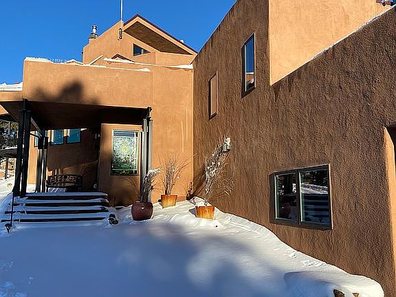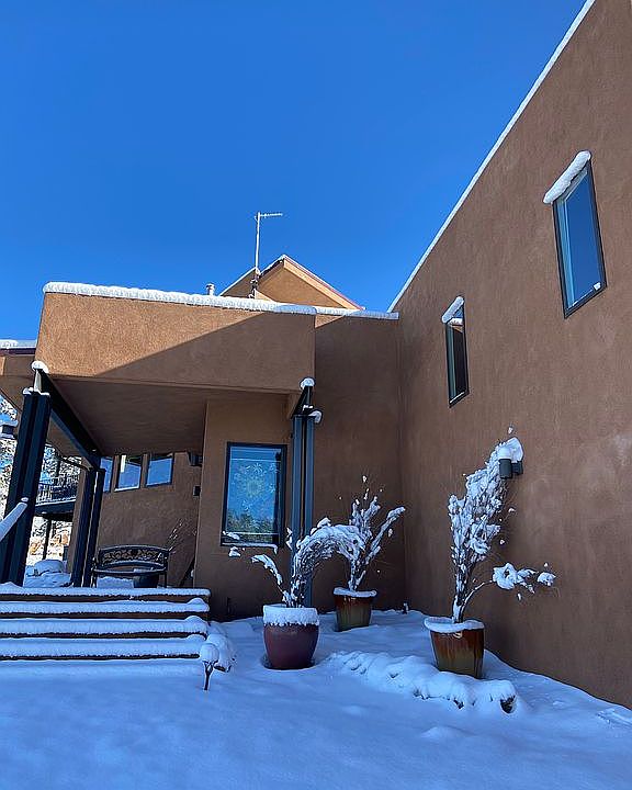 Hybrid home, Santa Fe style loft aesthetic very energy efficient passive solar home. 360 degree views. Two 10x20 tuff sheds (one a cabin w stove)