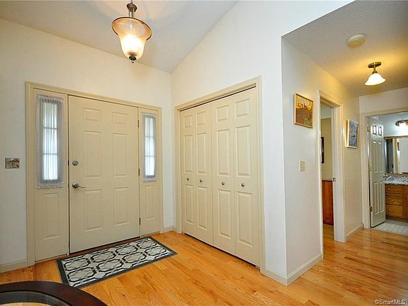 Welcome to one of the most sought after communities in Windsor Stockbridge is well known for its beautifully maintained condos and impeccable grounds. Pride of ownership is quite evident in this pristine two bedroom and two full bath Ranch style condo. Upon entering your new home you will be captivated by the brilliant new hardwood flooring that is featured throughout. Enjoy the luxury of complete one floor living and a carefree lifestyle as the lush grounds are maintained for you. The heart of this home is in the spacious and open great room that features a soaring cathedral ceiling, a gas log fireplace and two sliding doors that lead out to a 11' x 17' private deck. The kitchen features an abundance of oak cabinetry, granite countertops, stainless steel appliances, a tile backsplash and a dining area with a bay window. You will be pleased to find a nice master bedroom with a dedicated full bath, walk-in closet and an atrium door that leads out to the private deck. The second bedroom is perfect for guests or a private office. A sprawling lower level features a 14' x 15' family room and tremendous storage space. There is tremendous value found in the new furnace, new central air equipment, new hardwood floors, 7 new Anderson replacement windows, newer stainless appliances, new light fixtures and an electric operated deck awning. For the outdoor enthusiast, the nearby Farmington River trail park offers a beautiful setting with walking and biking trails.