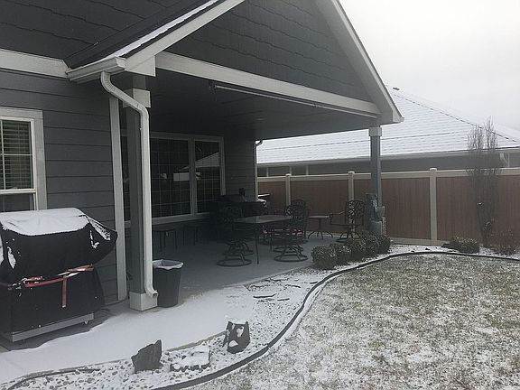 Enjoy the added security of a home in a gated community in the "The Villas" located in Terrace Heights. Built in 2017 this 1824 square foot house has many included upgrades. With vaulted ceilings and open floor plan it feels to be larger. The wide entry way has immediate access to two bedrooms and a guest bathroom. The great room has a gas fire place with stone work clear to the ceiling. The kitchen has shaker cabinets and cabinet lights with granite counter top (matching granite is included in both of the bathrooms) All appliances are no print stainless steel. The dining area includes a coffee bar also with matching granite counter top. French doors from the dining area lead to a spacious covered patio and the back yard. As you continue down the hallway from the dining area it leads you to the laundry room, mechanical closet which houses the hot water tank, water softener, heat pump furnnace, and from there to the complelty finished two car garage. Continueing on leads to the spacious master bedroom which includes a large walkin closet. The master bathroom has jack and jill sinks, a garden tub and large shower. Another set of french doors from the master bedroom leads ouside to a hot tub. In the graciously landscaped back yard there is storage shed and a walkway constructed of landscape tile which leads to the front yard. This custom bult home will not last long.