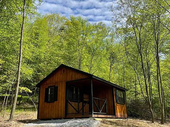 This new 18x14 cabin with a covered front deck is ready for you to finish as you see fit! Simple, convenient layout with lovely potential. Situated on the side of a gently sloping mountain, it is perfectly oriented to take advantage of the beautiful farmland views directly below. The 6-acre parcel is wooded and has tons of potential for outdoor visionaries: fire pits, hiking trails, ATV trails, bike trails. No water, sewer, or electric: ideal for true off-grid living, despite the excellent cell phone coverage. Property is accessed through an easement on a farm. Listing agent is related to the seller.