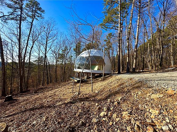 Embrace the opportunity to create your dream retreat with this unfinished geodesic dome located just 10 minutes outside of charming Eureka Springs. Nestled on 2+ acres, this unique property offers views of the breathtaking Ozark Mountains and the potential for additional land. All materials are onsite and convey-including kitchen cabinets, kitch/bath backsplash, countertops- Ready for the right buyer to bring this architectural gem to life. The property is equipped with owned solar panels and a propane tank, ensuring energy efficiency. Water is sourced from a shared community well, while the septic system is privately owned. Whether you're envisioning a tranquil mountain home, a one-of-a-kind vacation getaway, or a lucrative short-term rental, this geodesic dome is brimming with possibilities. The location balances seclusion & convenience, offering peace & privacy while remaining close to the amenities and charm of Eureka Springs. Don’t miss your chance to complete this exceptional property and make it your own!