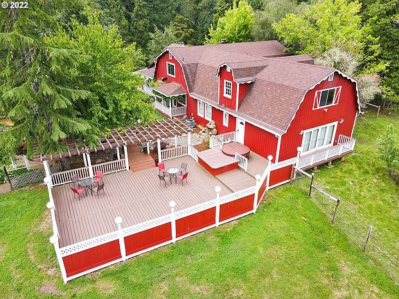 7.70 ACRES at Snowberry Junction, a whimsical place for young and old! A Prepper's delight, ideal for living off the land! A big red house, 4 bedrooms+, 3 baths, game room, library, country kitchen, formal dining. Guest room with bath. A chicken coop, 2602sq' workshop with guest quarters, with laundry & Kitchenet. Additional 3 covered spaces for PK/RV and Hookup, 30X36 green house, 3 bay open barn, garden, raised beds. Crossed fenced, two wells, one is 40GPM! A diesel generator, 5 kW solar.