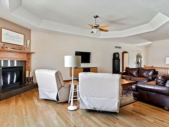 Stunning Ranch located on a Cul-de Sac in Manor Hill II - Beautiful hardwood flooring on main level w/new flooring in lower level. Gourmet Kitchen with Gary Bryant cabinets, large tiered granite island with lazy susan, pantry (2), 2 ovens, microwave and wine rack. Wet bar on each level, formal dining room with 10' ceiling & crown molding, living room with 9' tray ceiling w/surround sound wiring w/sub wolfer. Sunroom with crown molding (wired for Sirius XM Radio) leads to deck w/seated bench and lush landscaped rear fenced yard, patio area and flower box. Lower level features - full bath, bedroom w/new carpet, work/craft room, large storage area, separate entrance from garage and exterior, family room w/egress window, wet bar, nudo shelving in storage area. Add'l features: garage can park 4-5 cars, sprinkler system and firepit, drywall rounded corners, Generac generator, loads of storage