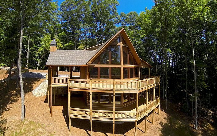 New Prow Front Cabin with Quality craftsmanship, and amazing long range view. Located in the Aska Adventure Area, close to the Toccoa River, Blue Ridge lake, Hiking and Biking Trails. This house features unique rough sawn finishes, SS appliances, granite countertops, tile showers, wood and tile flooring. Party porch/fireplace and covered porches. Hill into S Old Aska Trails to first power box will be paved once all construction is completed.