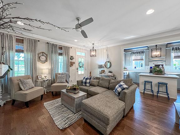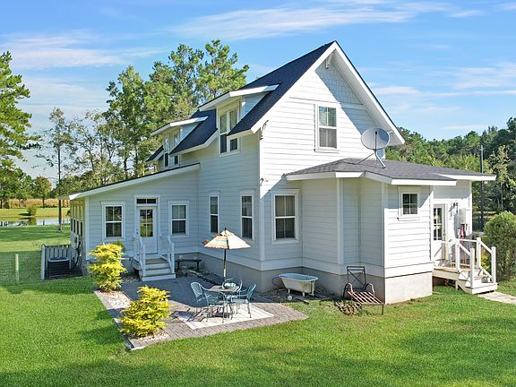 Set back off the road is this 3 year old Southern Charmer on 5 acres. Inside this inviting home are special touches throughout including shiplap and built-ins, a beautiful double fireplace, hardwood flooring, 9 ft ceilings, recessed lighting and crown molding. The kitchen features marble counters, a gas stove with pot filler, huge farmhouse sink and pantry. The eat in area includes a built in bench. The primary bedroom is downstairs with an en-suite that included 2 walk in closets, large tiled shower, and double sinks. Besides the main living room, there is a spacious bonus room/office, sunroom, you pick. Wait until you see the mudroom/laundry room! Rounding out the 1st floor is a guest bath. Upstairs are 2 more generous sized bedrooms and a full bath with a tiled shower/tub combo. Outsideenjoy the quiet setting from the wrap porch overlooking the lush landscaping and fully stocked pond. The back paver patio has a gas line for a grill. The home has a well with a attractive oversized pump house for additional storage. There is also landscape irrigation. The back half of the property includes a 20x70, 3 bay carport/lean to and a 10x20 workshop with storage and power. There is also a fenced in pen and shelter for animals. The gas appliances are serviced by a leased propane tank which is buried in the yard. Back on the market due to no fault of the seller. Inspections and appraisal were completed.