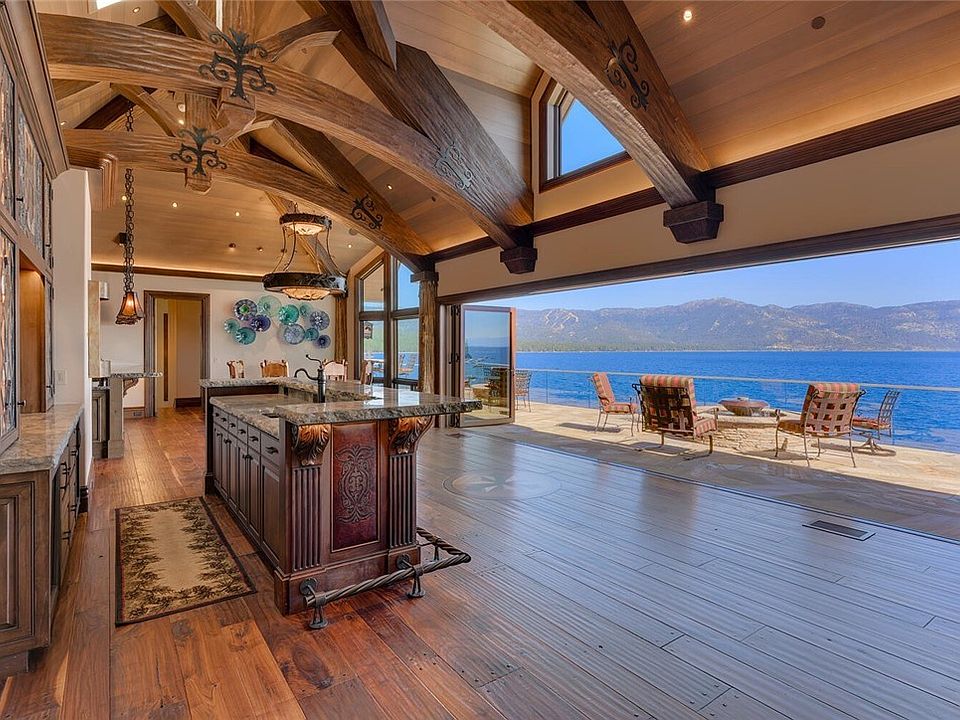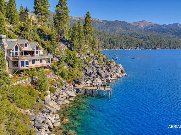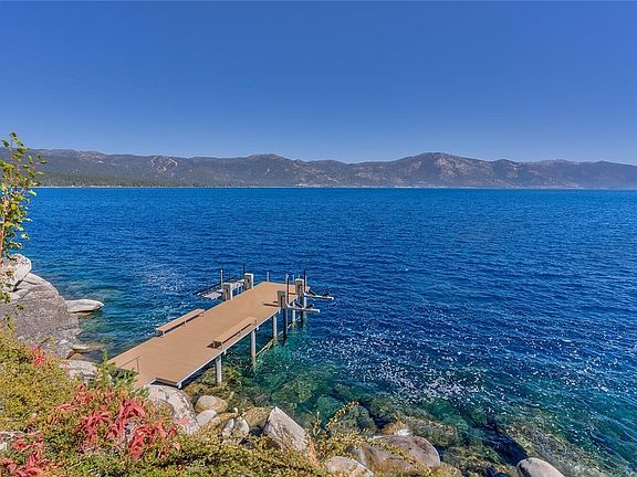 Perched above the deep blue waters of Lake Tahoe, Crystal Pointe presents a rare sanctuary where nature, architecture, and artistry unite. Pass through the private gates and immediately, the grandeur reveals itself. Pathways meander through sculpted gardens, waterfalls, and a level lawn. This 5.14 acre compound includes a separate lakeside home with an open great room, full kitchen, and expansive indoor/outdoor living. Step inside the main residence, where soaring windows frame the lake and each room is thoughtfully designed with custom details. From silk wallpaper in the state of the art theater to the perfectly positioned fossil stone floors, this home features rare architectural elements. Within the main house there is a guest wing with four ensuite bedrooms, a kitchen, living space and laundry. There is also a caretaker residence below the garage. The two glass funiculars and elevators provide direct access to the 525 feet of lake frontage and deep water pier with two boat lifts.