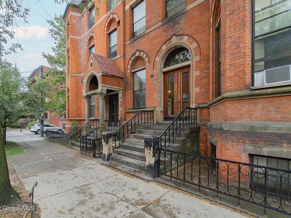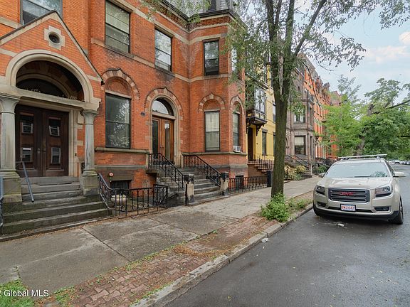 H657436...Designed by renowned NYC architect Russell Sturgis, this historic 8-unit investment property is located in the heart of Center Square. This 3-story high brownstone stands proudly near the corner of State Street and Dove. Lending to its unique character you will find parquet flooring, marble fireplaces, cathedral ceilings and extraordinary woodworking. A short walk to Downtown Albany, Washington Park, museums, eateries and nightlife, makes this a popular rental area w/young professionals. This house is always fully occupied! Tenants have access to additional storage and coined washer & dryer in basement. Don't miss your opportunity to own this unique and profitable income property.