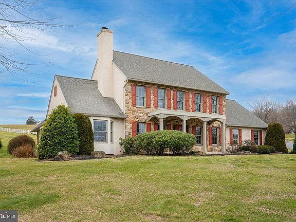 Lovely stone and stucco colonial home, located in Summerfield at Elverson Community. Low HOA fees cover lawn and snow maintenance. Home is on a corner lot and across the street from playground and community center. Covered front porch welcomes you, hardwood foyer entry. Living room is 2 story, with a cathedral ceiling, and a brick hearth fireplace. First floor, executive office with custom built ins for making work at home easy. Family room has hardwood flooring, new Therma Tru door installed for access to new deck where you can watch the best sunsets Chester County has to offer. The large eat in kitchen, also has access to deck and back yard. Kitchen has plenty of cabinetry, 5 burner glass cooktop stove, extra work space great for lap top work or a coffee/ wine bar. Formal dining room had wall paper removed and has been freshly painted. The spacious first floor primary suite has 2 walk in closets, en suite bathroom with dual sinks, soaking tub and stall shower. Two other bedroom upstairs with hall bath, linen closet and extra storage closets. Custom book cases adorn the 2 story overlook into the living room. The finished basement offers more living space with new carpeting, a powder room, oversized laundry area and craft/ storage room. The unfinished part of the basement gives an abundant amount of extra storage space if needed. Behind the home is a fenced in area where the neighbors have horses and you can enjoy watching them from different areas in the home. Seller has made numerous updates prior to going on market, stucco inspection prior to listing and made necessary repairs. Roof 2020, New hot water heater, new deck, new Andersen door other items have been completed too. Floor plans also attached. Summerfield is conveniently located close to major routes, turnpike, shopping, dining, golfing and other local attractions. All photos with furniture in them are virtually staged.