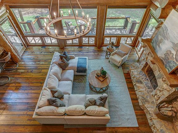 This is it! This Post and Beam Large Log home with almost 300 feet of frontage on the sought after upper Toccoa boast 3300 sq ft of well-maintained house, 2300 sq ft of flex space in detached garage/bonus room and more! If almost 4 acres w/gentle entry via natural stone steps to the Toccoa River, paved rd access, and end of road privacy are on your wish list then this is the home for you. From moment you walk into the expansive great room with huge windows bringing the river and National Forest into the home, a sense of peace overwhelms you. Take in the stacked-stone wood-burning fp, open concept living, chef's dream kitchen with oversized island, copper sink & backsplash, double ovens, Five-Star gas stove, custom oak cabinets, butler's pantry & sep dining area. The main floor plays host to an oversize master bdrm, beautiful spa-like bath w/heated floors, copper soaking tub and large walk-in closet. Another home office/guest room on main as well as 3 more bdrms, game loft, and bath on upper ensure plenty of space for everyone. Add in the magnificent screened-in porch with a 2nd wood burning fp, full-length deck overlooking the Toccoa, garden spot, huge garage/flex space with epoxied floors stubbed for bath, carport, firepit, and landscaping to make you the envy of all outdoor spaces. While you feel miles away from all your worries you are only 20 min from the nearest Walmart and charming downtown of Blairsville and Blue Ridge. Start your North GA therapy today!!