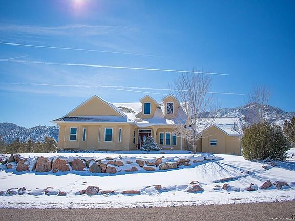 High up in the Dawson Ranch Development this Beautiful 4 bedroom 2 bath Home has a great view of Canon City. The home is well built with many extras including; Radiant Heat, Central Air, Maple Hardwood floors, Built in Window seat with Matching book cases and a Grand gas fired stone fireplace. The Master Bath has a large Jacuzzi tub and a Walk in shower. Outside there is 1500 feet of covered patio to enjoy. The landscaping is on a drip system, making it very easy to maintain.
