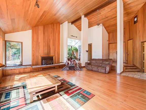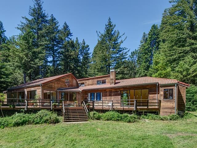 13 miles outside of Gilroy & 25 miles to Santa Cruz, this private oasis shines among the Redwoods. The home has an open floor plan with vaulted ceilings, a spacious living room, and a separate family room. The master suite has its own fireplace along with access to two decks. A sunny sitting area is located outside two of the bedrooms and the 2,400 square feet of decking offers additional living & entertaining space. The property also has a barn, a campsite with separate utilities, fruit trees, and views of the City lights.