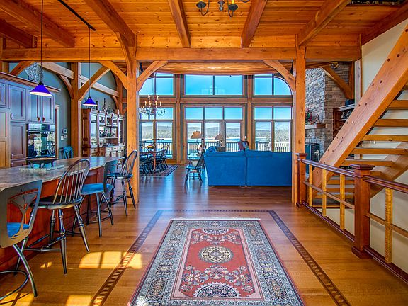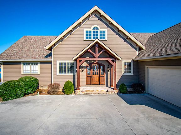 It's all about the lake life at this peaceful and private lake front paradise! This custom built waterfront home prestigiously sites on a landscaped .7 acre lot is artfully designed to ensure a view of the mountains and lake from virtually every major room. A truly exceptional residence located on Norris Lake inside the scenic Sunset Bay, this architecturally significant post and beam home is within walking distance of the community's many rich amenities including tennis courts, pickle ball courts and clubhouse with fitness room, pool and marina. An inviting driveway of impressive proportions welcomes you to the home with 2-car garage in front before wrapping around to a second set of temperature-controlled garages around back. This beautiful lake home reveals a breathtaking open concept