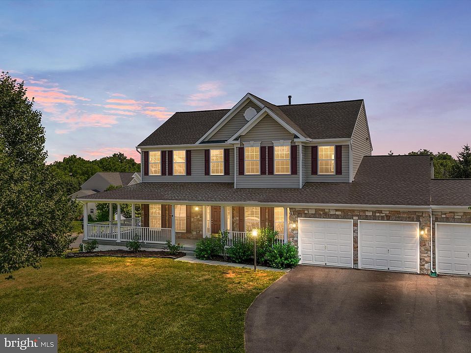 Looking for a July move -in? How about a quiet cul-de-sac? Been secretly dreaming you could have a 3 -car garage in this price range? How about award-winning schools? And maybe an extra large trex deck overlooking a fenced rear yard? And lastly, a move-in ready home with all new flooring, paint, and garage doors? Really? <br><br> Really.<br><br> A welcoming wrap-around front porch greets you, leading to a 2- story foyer with power descending chandelier (no more dragging out your tallest ladder). A fantastic floor plan awaits – all rooms are generous sized, with an office, living and dining rooms, huge family room with pellet stove, and a kitchen surely to impress.<br><br> Stainless steel appliances (most since 2021), a huge island, brand new subway tile backsplash and exotic Lemurian Blue Labradorite granite. A huge breakfast area for the largest table you could want. This area is sunny and bright. In fact, the entire house lets in lots of light.<br><br> Every room in both levels has been professionally painted, and all new flooring installed just before being listed. The HVAC system was replaced in 2020. A new roof was installed, driveway resealed and water heater replaced in 2019. The trex deck was added in 2017, and washer/dryer replaced in 2022. In 2017 a new pellet stove was installed for real cost savings in the winter months.<br><br> In the basement, there is over 1700 square feet for future living space. Lots of windows, and a walk-out exit. It’s a light-filled basement, so the possibilities are endless.<br><br> If I were you, I would RUN to see this home quickly. So much bang for the buck here! It’s a home that just makes sense with all that has been redone and replaced. Great location, great yard, and move-in ready. Could be the best decision you have made yet!<br><br>
