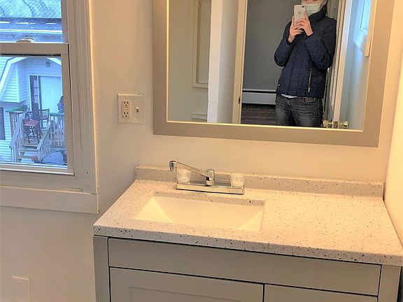 Own separate entrance, no apartment above and underneath this apartment like living in a townhouse. Front deck. First Floor. Two bedrooms, the smaller bedroom is on the small side that can be used as an Office/Storage room/Small Bedroom. Quiet and Nice neighborhood. Across street from Park. 1 minute to bus, close to shops. New shower and bath tub. Wood floor throughout. Gas Heat. Plenty of parking anytime.
