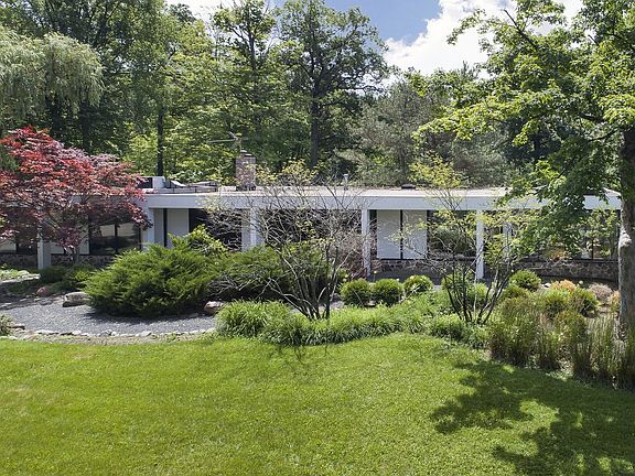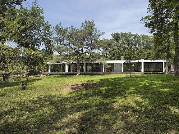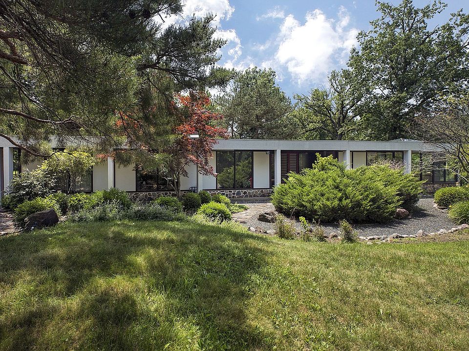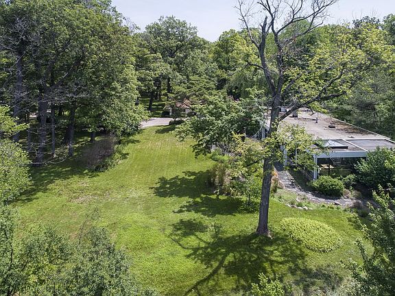 This mid-century modern ranch home by famed architect Robert Hausner, is truly a sanctuary in nature. Hausner designed & developed the home located on 4 acres in Riverwoods for his own family. The current owners have done several renovations while maintaining its original architectural integrity. A feng shui master proclaimed the house is in peace and harmony with the natural environment. An open floor plan w/an extensive use of wood, hand cut slate flooring & floor-to-ceiling glass windows creates the perfect environment for outdoor/indoor entertaining. The back of the house has an 8' wide marble slab porch that runs the entire length of the home. Large spacious living areas that seamlessly flow together - great rm, family rm, dining rm, kitchen, office, den & a screened-in porch w/electric screens. There are 2 private bedrms, with option to create a 3rd bedrm. Huge detach 2 car garage/barn that is 1,012 sq ft. This home is the perfect retreat to gather and entertain.