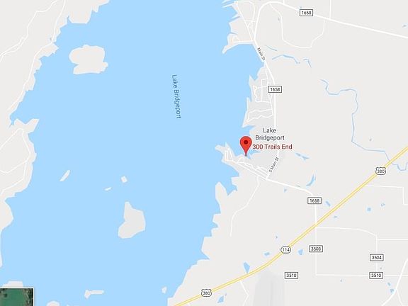 Located on the EAST side of Lake Bridgeport on 2 lots with 150' of Lakefront just off the main body! Bring your boat and water toys and use your own private boat ramp to launch! Diamond in the rough blue main home is 1351 sqft with 2 bdrms & 2 baths plus additional 336 sqft red cabin bungalow for guests! This can be your weekend getaway or your investment property.